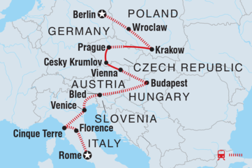 Begib dich auf dieser 22-tägigen Reise von Berlin nach Rom auf eine echte osteuropäische Eskapade. Mit viel freier Zeit an jedem Ort und einem örtlichen Reiseleiter, der dir unterwegs Empfehlungen gibt, tauchst du in den Trubel von Berlin, die Schönheit von Prag und die Hektik von Budapest ein. Besichtige das prächtige Sommerpalais in Wien, tauche in der Salzburger Altstadt in ein Märchen ein und wandere durch die bezaubernde Vintgar-Schlucht in Bled. Abschließend besuchst du die Kanäle und Klippendörfer von Venedig und Cinque Terre sowie die Piazzas von Rom - ein Abenteuer, das du dir nicht entgehen lassen solltest.