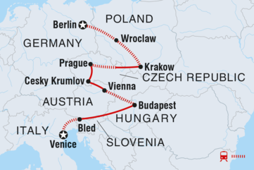 Diese 15-tägige Reise beginnt in Deutschland und endet in Italien und führt dich durch sage und schreibe sieben Länder. Gemeinsam mit anderen Alleinreisenden erlebst du historische Sehenswürdigkeiten, mittelalterliche Plätze, Burgen auf Hügeln, romantische Kanäle und ein pulsierendes Nachtleben, während du mit neuen Freunden Erinnerungen für ein ganzes Leben sammelst. Du beginnst in Berlin, der alten Hauptstadt Europas, wanderst auf dem Königsweg in Krakau, genießt die Terrakotta-Ansichten von Prag und Cesky Krumlov, lässt dich vom malerischen Bleder See verzaubern und landest schließlich in den postkartenreifen Kanälen von Venedig. Entdecke mit deinem Reiseleiter die Geheimnisse der Region, erkunde sie in deinem eigenen Tempo und nutze alle optionalen Aktivitäten, die du unternehmen möchtest. Und das Beste daran? Du wirst das alles mit gleichgesinnten jungen Reisenden machen, die Mitteleuropa auf die gleiche Weise bereisen wollen.