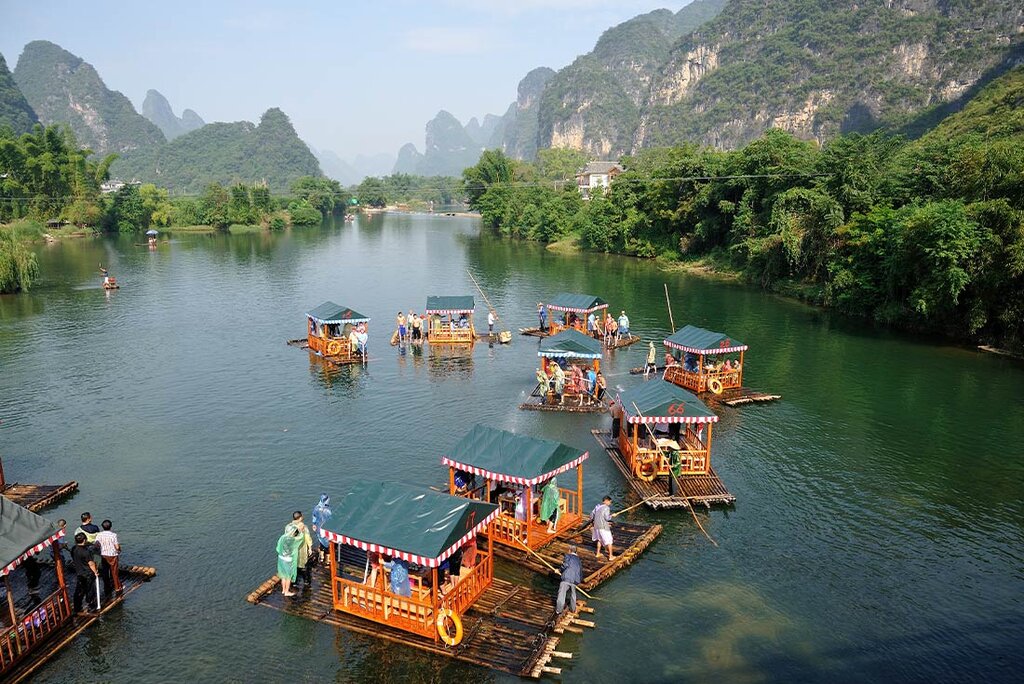 <Heute hast du einen letzten Vormittag Zeit, um den Zauber Shanghais aufzusaugen, bevor du mittags nach Guilin fliegst und von dort aus nach Yangshuo weiterfährst, wo sich die Karstberge wie Kuppeln um die Gewässer des Li-Flusses erheben. Die Landschaft um Yangshuo ist in vielen traditionellen chinesischen Gemälden verewigt und es ist leicht zu verstehen, warum. Bei deiner Ankunft checkst du in deine Unterkunft für die nächsten zwei Nächte ein - ein modernes Hotel, das inmitten der Karsthügel und Flüsse von Yangshuo versteckt liegt. Hier erlebst du eine ruhige Umgebung mit Blick auf die Berge. Der Abend steht dir zur freien Verfügung, um die Natur zu genießen - du kannst in der Umgebung spazieren gehen oder dich ein wenig entspannen.