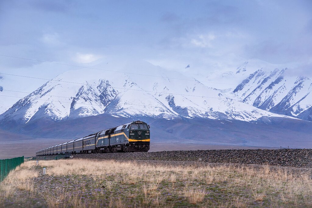 <Heute kannst du dich einfach nur zurücklehnen, entspannen und die Bergkämme und die abgelegene Landschaft entlang der höchsten Eisenbahn der Welt genießen. Die Reise führt dich durch die Großstädte Xi'an, Lanzhou und Xining und über das weite Hochland des Qinghai-Tibet-Plateaus mit grasenden Yaks und Schafen sowie einem glitzernden See. In dieser zweiten Nacht steigst du in die Höhe und die wechselnden Landschaften vor den Fenstern werden dir den Atem rauben - schneebedeckte schwarze Felsen und vom Mondlicht beleuchtete Berggipfel.