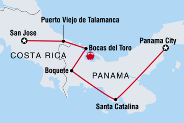 Bei diesem 12-tägigen Karibik-Abenteuer tauchst du unter die Oberfläche von Costa Rica und Panama. Von San Jose nach Panama City lernst du einige der schönsten Orte in den beiden mittelamerikanischen Ländern kennen, mit einer perfekten Mischung aus inkludierten Aktivitäten und freier Zeit für eigene Erkundungen. Du besuchst die Ngabe-Bugle-Gemeinde auf der Isla Popa, lernst, wie man ein traditionelles karibisches Gericht zubereitet, hältst bei einer Dschungelwanderung Ausschau nach wilden Tieren, besuchst eine Schleuse am Panamakanal und genießt die lokalen Hotspots in selten bereisten Gegenden. Mit einem einheimischen Reiseleiter, der dich in die richtige Richtung lenkt (zu den besten Bars und Surfspots), und einer kleinen Gruppe von Abenteurern, mit denen du sie genießen kannst, kannst du nichts falsch machen.