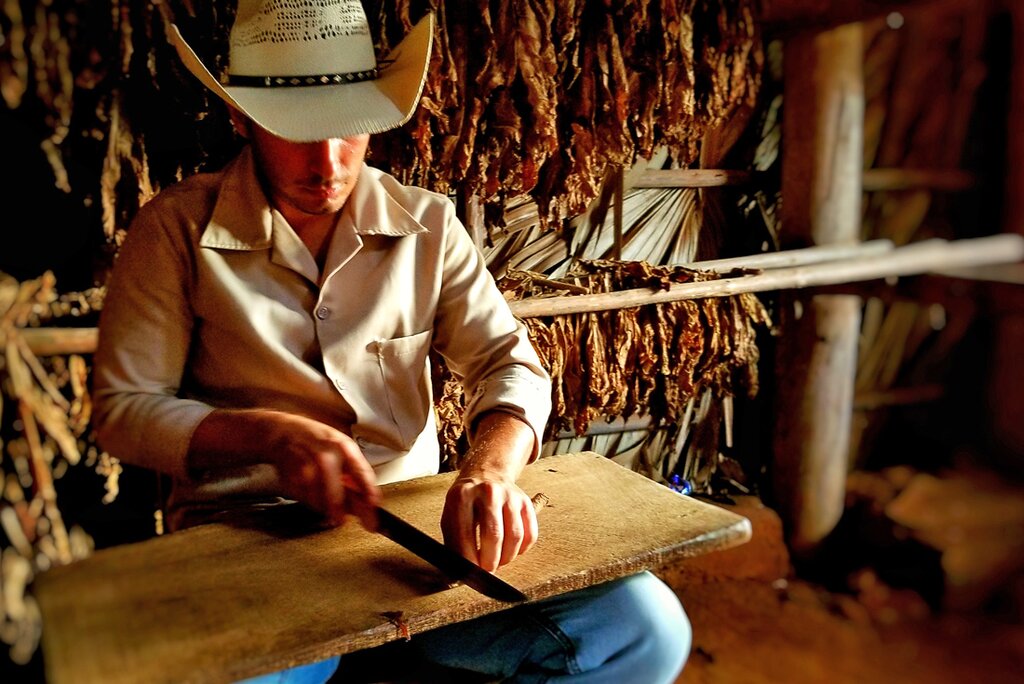 <Fahre zur hügeligen Cueva de los Portales, wo der legendäre Che Guevara wohnte und die westliche Armee der kubanischen Revolution trainierte. Von hier aus radelst du weiter zur UNESCO-geschützten Stadt Vinales. Diese wunderschöne, abgelegene Gegend inmitten niedriger Berge erinnert an die Kalksteinkarstlandschaft Vietnams und ist der perfekte Ort, um mit wenig Verkehr auf den Straßen zu fahren. Trete in die Pedale und werde mit spektakulären Aussichten belohnt, bevor du weiterfährst und Mama Luisa triffst - eine erfahrene Bäuerin, die dich mit einem köstlichen Essen verwöhnen wird. Danach fährst du zu einer Tabakfarm, wo du einen anderen Bauern triffst, der dir zeigt, wie der Tabak getrocknet und dann zu Zigarren gerollt wird - hier hast du die Möglichkeit, diese kubanische Spezialität direkt vom Hersteller zu kaufen. Steig wieder in das Begleitfahrzeug und komm rechtzeitig nach Vinales zurück, um in einem Restaurant in den Bergen ein "Farm-to-Plate"-Erlebnis zu genießen. Das Essen hier ist zu 100 % biologisch und wird vor Ort angebaut. Und obwohl die Getränke nicht im Preis inbegriffen sind, zahlst du nur für die Mixer, denn der Rum ist kostenlos!