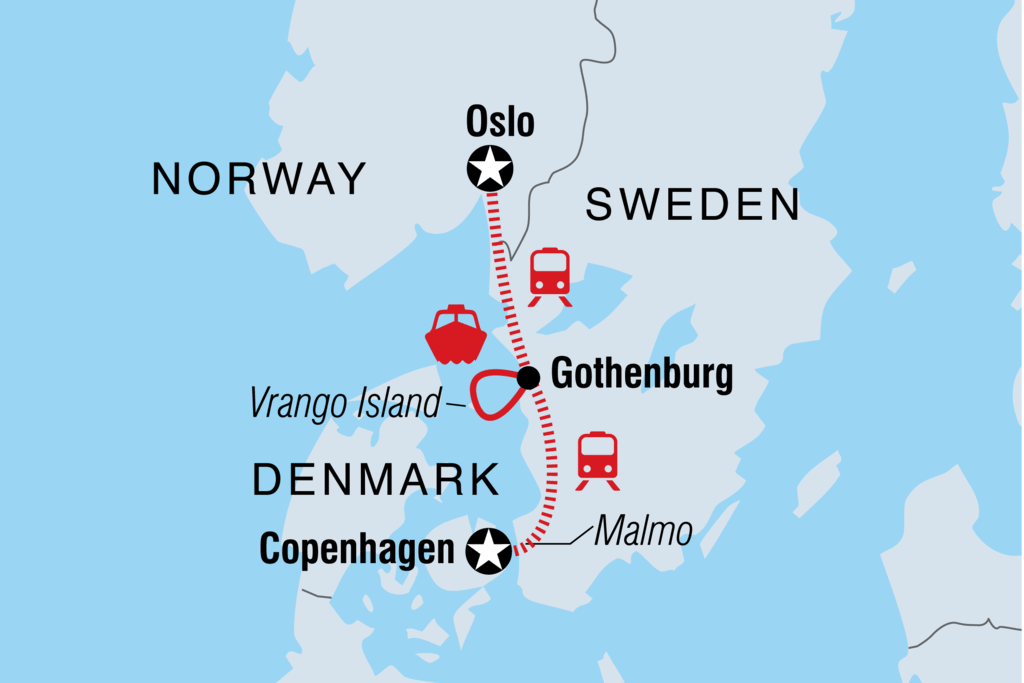 Bitte beachte, dass die Zimmer in Hotels in Skandinavien im Vergleich zu Unterkünften in anderen Teilen Europas oft kleiner und einfacher sind. Bei ungünstigem Wetter kann die Fahrradtour bei Abfahrten im Frühjahr/Winter durch eine geführte Stadtbesichtigung ersetzt werden. -