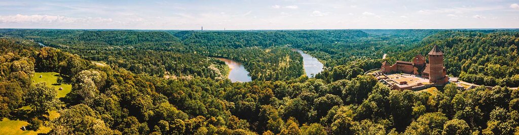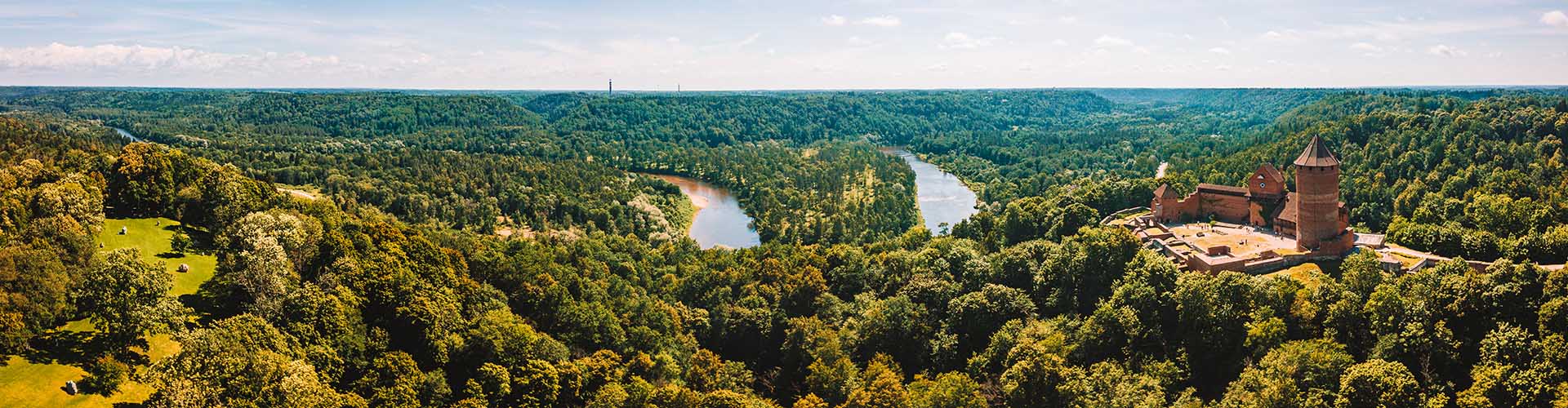 <Fahre mit den öffentlichen Verkehrsmitteln nach Sigulda - eine hübsche Stadt mit mittelalterlicher Geschichte, die direkt an den Gauja-Nationalpark grenzt. Nimm die Seilbahn über den Fluss zur Burg Turaida, deren Bau im Jahr 1214 begann und die aus markanten roten Ziegeln besteht. Nimm anschließend an einer Führung teil und erkunde den Burgpark mit seinen Skulpturen inmitten eines immergrünen Waldes. Am Nachmittag schnürst du deine Stiefel und wanderst mit deinem Reiseleiter entlang des gewundenen Flusses Gauja, um die klare Luft und den dichten lettischen Wald zu genießen. Der Abend steht dir dann zur freien Verfügung - vielleicht schließt du dich deiner Gruppe zum Abendessen in einem lokalen Restaurant an.