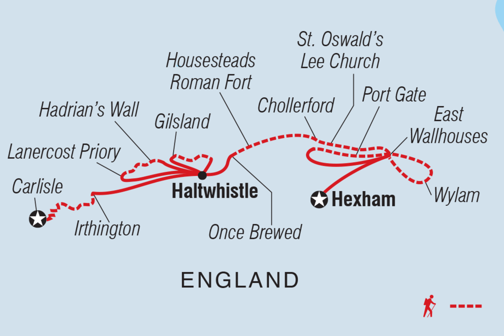 Nach einem kurzen Transfer zurück zum Wanderweg beginnst du deine Wanderung heute Morgen an der Lanercost Priory - einst die Hauptstadt Englands. Weiter geht es zum Birdoswald Roman Fort, wo du Zeit für einen optionalen Besuch des historischen Bauwerks hast, das über 2000 Jahre lang bewohnt war. An diesem Ort sind viele der charakteristischen Merkmale der Mauer zu sehen. Mit Blick auf die Irthing-Schlucht ist dieser Abschnitt des Hadrianswalls der längste und einer der am besten erhaltenen Abschnitte. Nachdem du etwas Zeit mit deiner Gruppe verbracht hast, wanderst du nach Gilsland, von wo aus du zu deiner Übernachtungsstätte in Haltwhistle zurückkehrst.