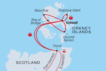 Die Orkney-Inseln vor der Nordspitze Schottlands sind eine faszinierende Mischung aus Geschichte, Geheimnissen und atemberaubenden Landschaften, die darauf warten, von Land und von See aus erkundet zu werden. In fünf Tagen erlebst du das Beste von Orkney. Du startest in Inverness, dem Zentrum der Highlands, und nutzt die malerische Stadt Kirkwall als Ausgangspunkt. Bewundere die atemberaubende Landschaft, während du das neolithische Dorf Skara Brae erkundest, das schon vor Stonehenge existierte, besuche das berühmte Scapa Flow Museum auf der Insel Hoy und tauche ein in die lokale Geschichte. Auf dem Weg dorthin kannst du vielleicht sogar eine Whiskyverkostung in einem der örtlichen Pubs genießen. Mit einem ortskundigen Reiseleiter und einer wissbegierigen Gruppe war diese Reise durch die europäische Geschichte noch nie so verlockend wie heute.