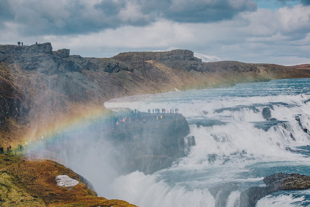 <Fahre früh los, um den Menschenmassen auf der Golden Circle Route zu entgehen. Mach dich auf den Weg zum Thingvellir-Nationalpark, der die Parlamentsebene beherbergt und in dem sich das erste isländische Parlament befand. In Thingvellir befindet sich auch die Silfra-Spalte, an der die nordamerikanische und die eurasische tektonische Platte langsam auseinander gezogen werden. Der dadurch entstandene Spalt ist teilweise mit Süßwasser gefüllt und gut sichtbar. Von hier aus kannst du zum Geothermalgebiet Geysir fahren, den Strokkur besuchen und beobachten, wie der Geysir mit blauem Wasser anschwillt, bevor er ausbricht und 20 bis 30 m in die Luft schießt. Bewundere die immense Schönheit und die schiere Kraft des Gullfoss (Goldener) Doppelwasserfalls am Fluss Hvita, bevor du zu einem abgelegenen Bauernhof in der Region Hvolsvollur weiterfährst - deinem Zuhause für die Nacht.