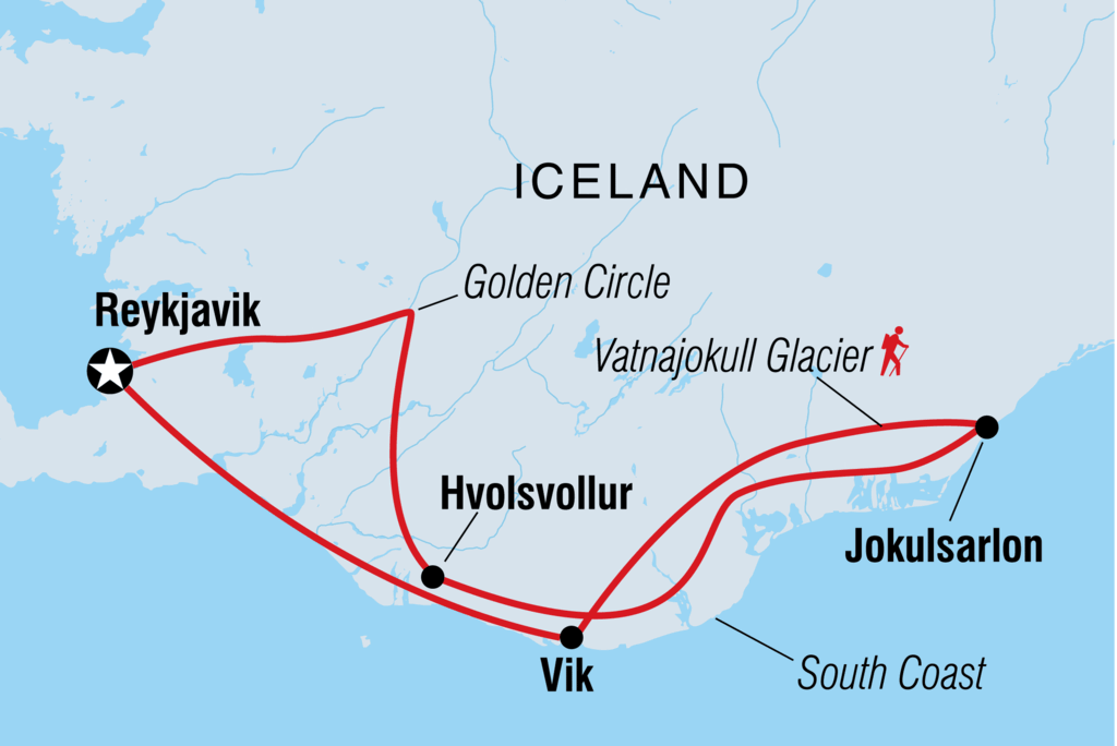 <Hallo! Willkommen in Island. Dein Abenteuer beginnt in der nördlichsten Hauptstadt der Welt, Reykjavik, knapp unterhalb des Polarkreises. Umgeben von vulkanischen Gipfeln und kristallklarem Meer bietet die Stadt eine lebendige Kunst- und Ausgehszene. Du triffst deine Reisegruppe und deinen Reiseleiter heute Abend um 18 Uhr zu einem Willkommenstreffen. Wenn du früher ankommst, kannst du den Nachmittag damit verbringen, das Stadtzentrum mit seinen Boutiquen, gemütlichen Cafés und Kunstgalerien zu erkunden. Vielleicht besuchst du das Nationalmuseum, um mehr über die Geschichte Islands seit dem 9. Jahrhundert zu erfahren, als die ersten Wikinger vom skandinavischen Festland kamen und sich niederließen. Heute Abend gehst du vielleicht zum Abendessen und lernst deine neuen Mitreisenden kennen.