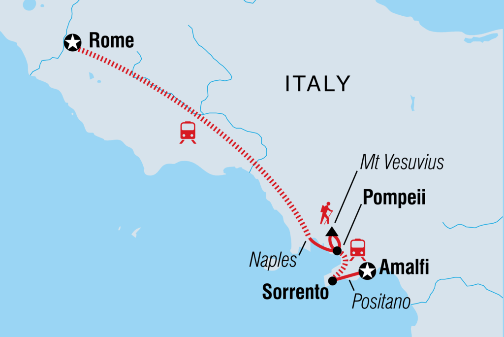 Wenn du einen Kurztrip voller historischer Stätten und köstlicher Häppchen suchst, ist dieses achttägige Abenteuer genau das Richtige für dich. Lerne Italiens "Ewige Stadt" (Rom) kennen, wandere auf den Vulkan Vesuv in der Bucht von Neapel und erlebe die Folgen des Ausbruchs von Pompeji im Jahr 79 n. Chr. bei einer geführten Tour. Dann genieße die Sonne in der Küstenstadt Sorrento, probiere Limoncello direkt an der Quelle und wandere entlang der wunderschönen Amalfiküste. Mit archäologischen Ausgrabungsstätten, Gelatiere-Workshops, Pizzaverkostungen und einem einheimischen Führer, der dir seine Kultur näher bringt, bist du bereit für einen Hauch von la dolce vita.