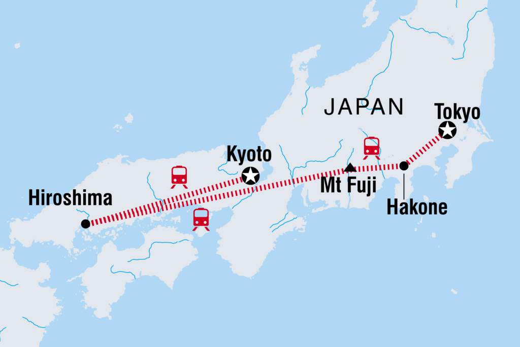 Schnapp dir die Kinder und begib dich auf ein Abenteuer durch das Land der aufgehenden Sonne auf dieser 12-tägigen Familienreise durch Japan. Von den Häusern der alten Kaiser bis hin zu den neuesten technischen Errungenschaften bietet diese Reise alles, was man als Familie sehen und unternehmen kann, und dazu noch genug Zeit, um sich im Onsen zu entspannen. Lerne die Kunst der Kalligrafie in Tokio, fahre mit der Hakone-Seilbahn und genieße den Blick auf den Berg Fuji und tauche in Kyoto in die japanische Kultur ein. Mit dem Fachwissen deines Reiseleiters vor Ort, auf das du bei jedem Schritt zurückgreifen kannst, ist dies ein Familienurlaub, der garantiert lebenslange Erinnerungen hinterlässt.