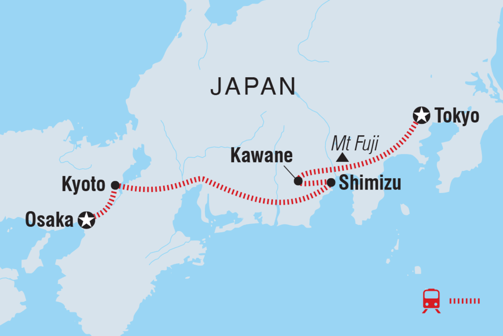 Die Heimat des Sumo, der Geishas, des Sake, des Karaoke, der Onsen und der Izakaya - Japan ist ein Fest für alle deine Sinne. Auf dieser neuntägigen Reise lernst du das Land der aufgehenden Sonne in all seinen Facetten kennen und schätzen. Nimm das geschäftige Treiben in Tokio in dich auf, bevor du in einer Gastfamilie auf dem Land übernachtest, wo du fantastische hausgemachte Mahlzeiten bekommst und die Aussicht auf den Fuji genießen kannst. Fahre mit dem futuristischen Hochgeschwindigkeitszug nach Kyoto und Hiroshima und tauche ein in die Geschichte dieses Landes, bevor du dein Abenteuer im Feinschmeckerparadies Osaka beendest.