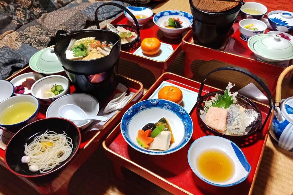 - Hotel (3 Nächte), Ryokan (1 Nacht), Gästehaus/Ryokan (2 Nächte), Tempelaufenthalt (1 Nacht)