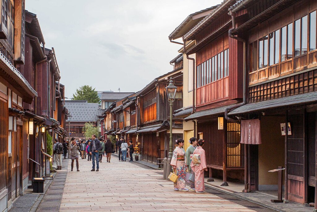 <Erkunde Kanazawa heute zu Fuß bei einem Rundgang durch den Stadtteil Higashi Chaya. Verliere dich zwischen Geishas, während du durch Gassen und traditionelle Chaya-Häuser läufst, die in der Region als Orte der Tradition, Feste und Unterhaltung bekannt sind. Wenn du auf Tee stehst, genieße vielleicht eine traditionelle Teezeremonie in einem der örtlichen Teehäuser. Der Nachmittag steht dir dann zur freien Verfügung, um die Stadt auf eigene Faust zu erkunden. -