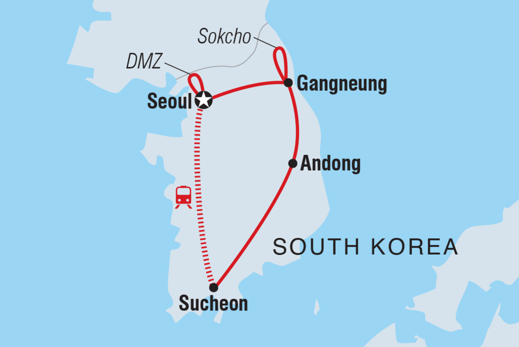 <Begib dich am frühen Morgen auf eine Tour durch die Entmilitarisierte Zone (DMZ). Auf der südkoreanischen Seite der Zone erfährst du, wie die Halbinsel seit dem verheerenden Koreakrieg geteilt ist. Du besuchst den Dritten Tunnel der Aggression, die Vereinigungsbrücke, den Imjingak-Park und das Dora-Observatorium. Am Nachmittag erkundest du den Gyeongbukgung Palast - den wichtigsten Königspalast der Joseon-Dynastie - und das traditionelle Bukchon Hanok Dorf. Deine Tour endet am späten Nachmittag in Bukchon, wo du vielleicht bleiben möchtest, denn es gibt viel zu entdecken. Oder du besuchst den Berg Namsan oder das Kriegsmuseum in Yongsan.