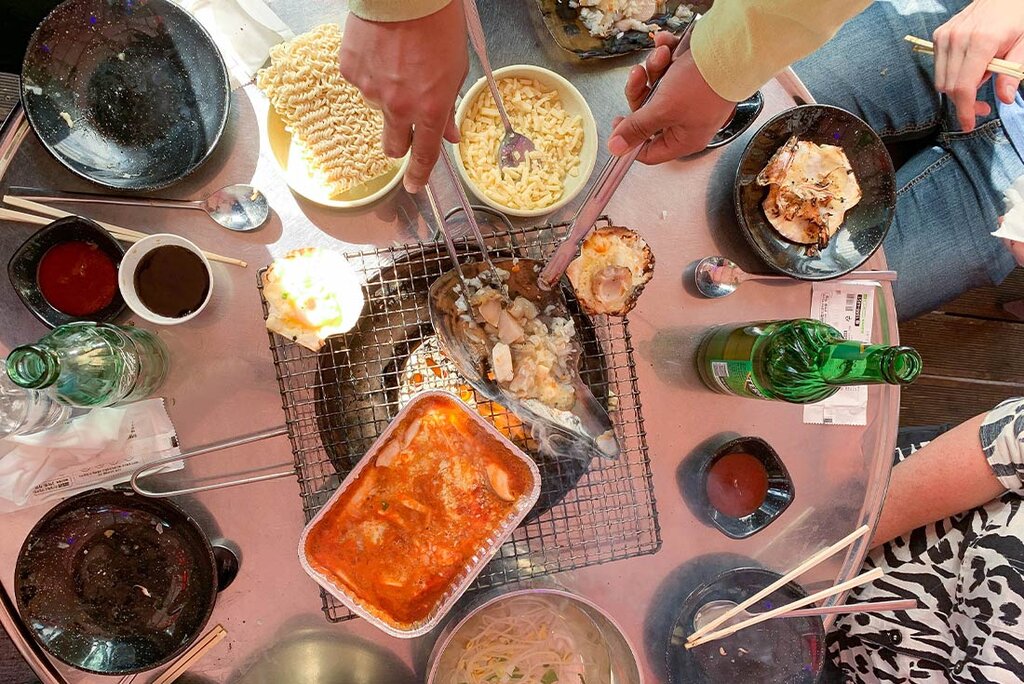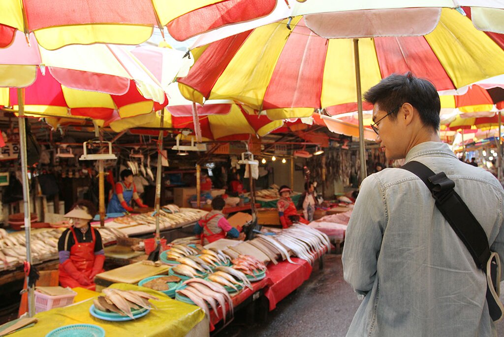 <Setze deine Reise nach Busan fort. Zuerst hältst du am Haedong-Tempel, einem wunderschönen Tempel, der in die Felsen am Meer gebaut wurde. Bei einem Kochkurs, bei dem du Gerichte für dein Mittagessen zubereitest, kannst du dein Essen selbst in die Hand nehmen. Danach gehst du zum Haeundae Beach und bewunderst den Kontrast zwischen dem weißen Sand und den entfernten Wolkenkratzern. Der Rest des Nachmittags steht dir zur freien Verfügung - vielleicht machst du eine Sightseeing-Tour von einer Yacht aus, entspannst dich in einer Jjimjilbang (südkoreanische Sauna) oder siehst dir ein Baseballspiel im Sajik Baseball Stadium an. Beim Abendessen gibt es Lammspieße nach koreanischer Art. Neben der leckeren Marinade mit einer Mischung aus koreanischen Gewürzen haben diese Spieße einen Selbstdrehmechanismus. Ein spezieller Grill lässt die Spieße automatisch rotieren und sorgt dafür, dass das Fleisch perfekt gegart wird - lecker!