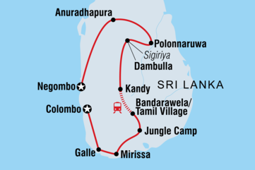 Auf dieser 15-tägigen Reise lernst du die wichtigsten Sehenswürdigkeiten, Geschmäcker und Begegnungen des wunderschönen Sri Lanka kennen. Du erklimmst den zum UNESCO-Weltkulturerbe gehörenden Löwenfelsen in Sigiriya, radelst durch die ausgedehnten Ruinen der antiken Stadt Anuradhapura und wanderst durch die massiven Buddha-Schnitzereien aus Granit in Polonnaruwa. Iss mit einem tamilischen Teearbeiter in seinem Haus zu Mittag, entspanne dich mit einem kalten Bier und deinen Füßen im Sand in Mirissa und wandere zwischen Plantagen und Dörfern in Haputale. Das ist das Beste von Sri Lanka!