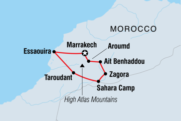 Auf dieser 11-tägigen Reise erlebst du den Süden Marokkos von seiner besten Seite. Du übernachtest in einer Familienunterkunft im Atlasgebirge, zeltest unter den Sternen in der tiefen Sahara und wohnst in einem traditionellen Riad in Essaouira. Besuche die prächtige Kasbah von Ait Benhaddou, mache eine Kamelsafari bei Sonnenuntergang in der Wüste, wandere in der Oase der Palmenhaine und schlemme Tagine, Couscous und duftenden marokkanischen Tee. Dies ist die perfekte Reise, um die ausgetretenen Pfade zu verlassen und den Charme des südlichen Marokkos zu entdecken.