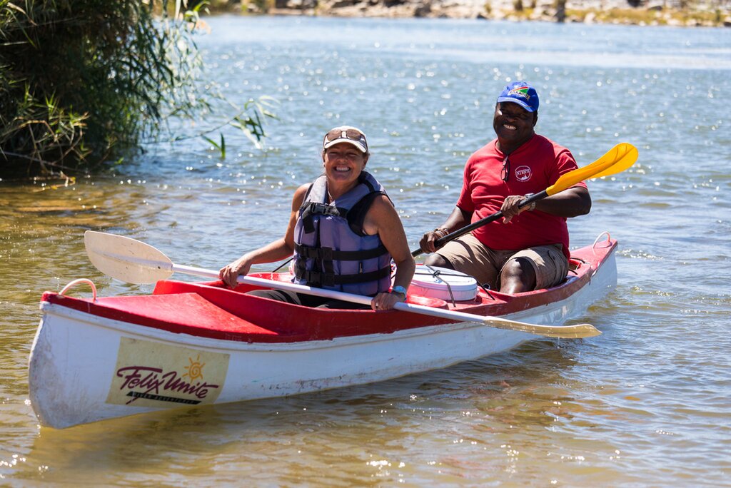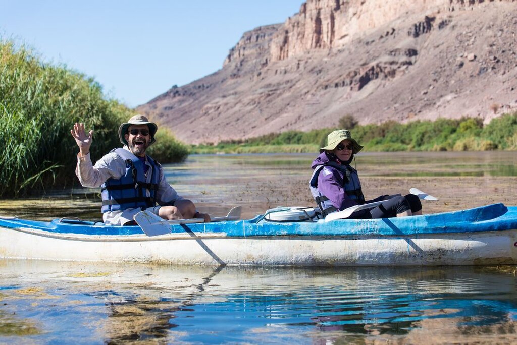 <Verbringe einen entspannten Morgen am Außenpool oder genieße den Blick auf den Orange River im Morgenlicht. Wenn du dich nicht entspannen willst, kannst du auch eine Kanutour auf dem Fluss und durch das uralte Richtersveld-Gebirge machen. Später kannst du zum Fish River Canyon fahren - einem der größten Canyons der Welt. Unterwegs kannst du an verschiedenen Aussichtspunkten anhalten, um diese gigantische Schlucht mit der Kamera festzuhalten. Halte Ausschau nach exotischen Vögeln wie Regenpfeifern, Bachstelzen, Hamerkops und Reihern - vielleicht kannst du in der Abenddämmerung sogar einen Pavian oder eine Antilope sehen!