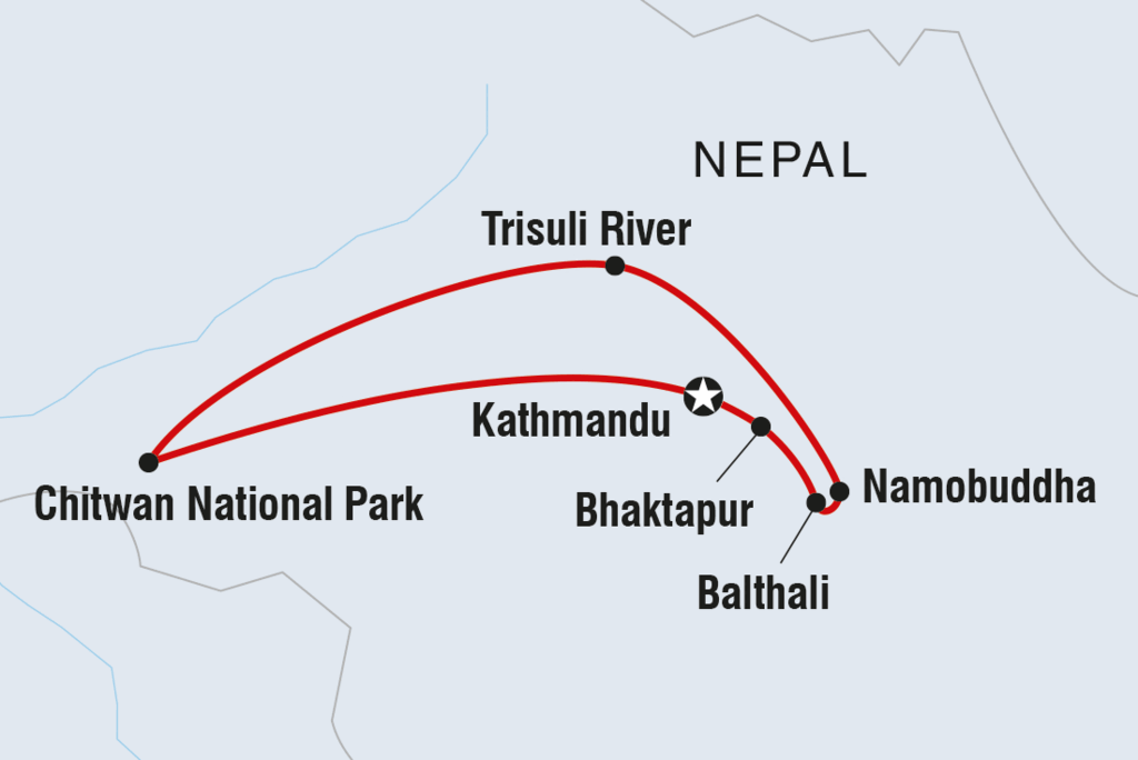 Hoch hinaus in Nepal Auf dieser 10-tägigen Reise, die in der pulsierenden Hauptstadt des Landes beginnt und endet, lernst Du das faszinierende Nepal kennen. Spaziere durch abwechslungsreiche Landschaften zur heiligen buddhistischen Stätte Namobuddha, besuche das wunderschöne Thrangu Tashi Yangtze Kloster und verspüre Nervenkitzel beim Rafting auf dem Fluss Trisuli. Diese Reise führt Dich durch die Geschichte und die Kultur des Landes und überrascht Dich immer wieder aufs Neue mit schillernden Landschaften und wilden Abenteuern. Warum wir diese Reise lieben Auf dieser abwechslungsreichen Reise lernst Du alle Facetten des Landes kennen. Wandere durch atemberaubende Landschaften, besuche Tempel, erkunde alte Städte und erlebe Nervenkitzel beim Wildwasser-Rafting. Die offenen und gastfreundlichen Menschen in Nepal sind einer der vielen Gründe, warum Reisende das Land immer wieder besuchen wollen. Abseits der ausgetretenen Pfade Kathmandus warten Geheimtipps wie Namobuddha und Balthali auf Dich. Besuche Klöster und schaue einheimischen Künstlern beim Malen von Thangkas zu (tibetische Malereien auf Leinen). Wir verbringen einen Tag in der alten religiösen Stadt Bhaktapur im Kathmandutal. Wörtlich übersetzt bedeutet der Name der Stadt „Ort der Verehrer“. Bei der Übernachtung in einem einfachen, gemütlichen Camp am Fluss Trisuli kannst Du Dich von dem Nervenkitzel des Wildwasser-Raftings erholen. Passt diese Reise zu Dir? An einigen Tagen sind wir recht lange unterwegs (einige Straßen scheinen eine Dauerbaustelle zu sein). Was auf der Karte nach einer recht kurzen Strecke aussieht, kann in Wirklichkeit unerklärlich lange dauern. Bringe also ein wenig Geduld (und ein paar gute Podcasts) mit und genieße die Reise. Auf dieser Reise fahren wir nicht in die hohen Lagen Nepals. Wenn Dich die Höhenlage bisher zögern ließ, Nepal zu buchen, wirst Du auf dieser Reise keine Probleme mit der Akklimatisierung haben. Bitte sprich mit Deinem Reiseleiter, wenn Du kein sicherer Schwimmer bist, da eine Wildwasser-Rafting-Tour auf dieser Reise inklusive ist. Du bist natürlich nicht verpflichtet, an dieser Aktivität teilzunehmen, und kannst stattdessen im Camp entspannen. Im Camp am Fluss Trisuli, wo wir eine Nacht verbringen, werden Zelte, Matten und Schlafsäcke gestellt. Hier gibt es eine einfache Toiletteneinrichtung. Außerhalb der größeren Städte ist Nepal sehr ruhig. Es gibt wenige „Touristenattraktionen“ und organisierte Aktivitäten. Stattdessen kannst Du die Zeit hier wunderbar zum Entspannen und Erkunden der Gegend nutzen. Die Tage sind nicht vollgepackt mit Programmpunkten, Du kannst diesen Teil Nepals ganz nach Deinem eigenen Tempo kennenlernen. Da wir uns teilweise in Gegenden aufhalten, in denen es keine große Auswahl an Restaurants gibt, kann es vorkommen, dass einige Mahlzeiten vorbestimmte Menüs sind, bei denen Du nicht zwischen verschiedenen Optionen wählen kannst. Wenn Du die Kultur Nepals lieber im „Comfort“ Stil kennenlernen willst, schaue Dir doch unsere Reise „Classic Nepal“ (Tripcode HNKA) an.