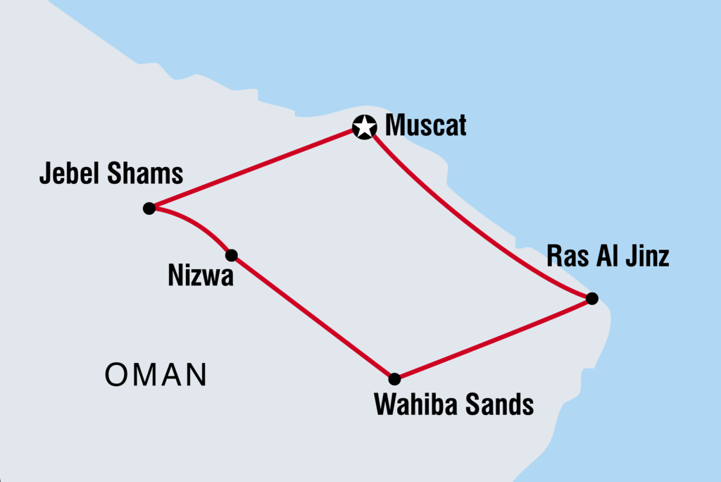 Es ist sehr wichtig, dass du am Begrüßungstreffen teilnimmst, da wir bei dieser Gelegenheit deine Versicherungsdaten und die Daten deiner nächsten Angehörigen aufnehmen werden. Wenn du dich verspäten solltest, gib bitte deinem Reisebüro oder der Hotelrezeption Bescheid. Frag an der Rezeption nach oder halte Ausschau nach einem Zettel in der Lobby, um zu erfahren, wo das Treffen stattfinden wird. Muscat ist ziemlich verstreut und das öffentliche Verkehrssystem ist nicht gut ausgebaut. Unser Hotel in Muscat liegt günstig und hat Restaurants in der Nähe, aber wenn du Muscat vor der Tour auf eigene Faust erkunden möchtest, empfehlen wir dir, ein Taxi zu nehmen. Eine Fahrt vom Hotel in die Altstadt von Muscat kostet etwa 5 OMR (13 USD). -