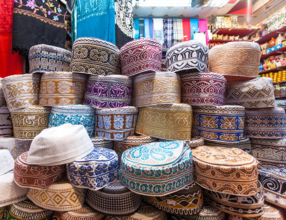 <Beginne deine Erkundungen mit einem Besuch der wunderschönen Sultan-Qaboos-Großmoschee. Die größte Moschee Omans bietet Platz für 20.000 Gläubige und beherbergt den zweitgrößten Teppich der Welt, der von iranischen Frauen in Handarbeit gewebt wird und vier Jahre für seine Herstellung benötigt. Dein nächster Halt ist die Altstadt von Muscat, wo du die beiden portugiesischen Festungen aus dem 16. Jahrhundert, Jalali und Mirani, siehst, die den Eingang zur Stadt bewachen. Fahre hinunter zum geschäftigen Fischereihafen von Muttrah mit seinen hölzernen Dhows und Fischerbooten und halte auf dem Basar (Souq) an, wo du ein lokales Parfüm oder eine Postkarte kaufen kannst. Besuche die Sidab Women's Group und erfahre, wie sie die einheimischen Frauen durch die Produktion und den Verkauf von wiederverwendbaren Taschen stärkt. Nachdem du dich über die Organisation informiert hast, kannst du eine Auswahl an Salaten, Sambusas und Eintöpfen genießen, die unsere Gastgeber für dich zubereitet haben. Der Nachmittag steht dir dann zur freien Verfügung. Eine optionale Kreuzfahrt zum Sonnenuntergang bietet einen spektakulären Blick auf die felsige Küstenlinie der Stadt.