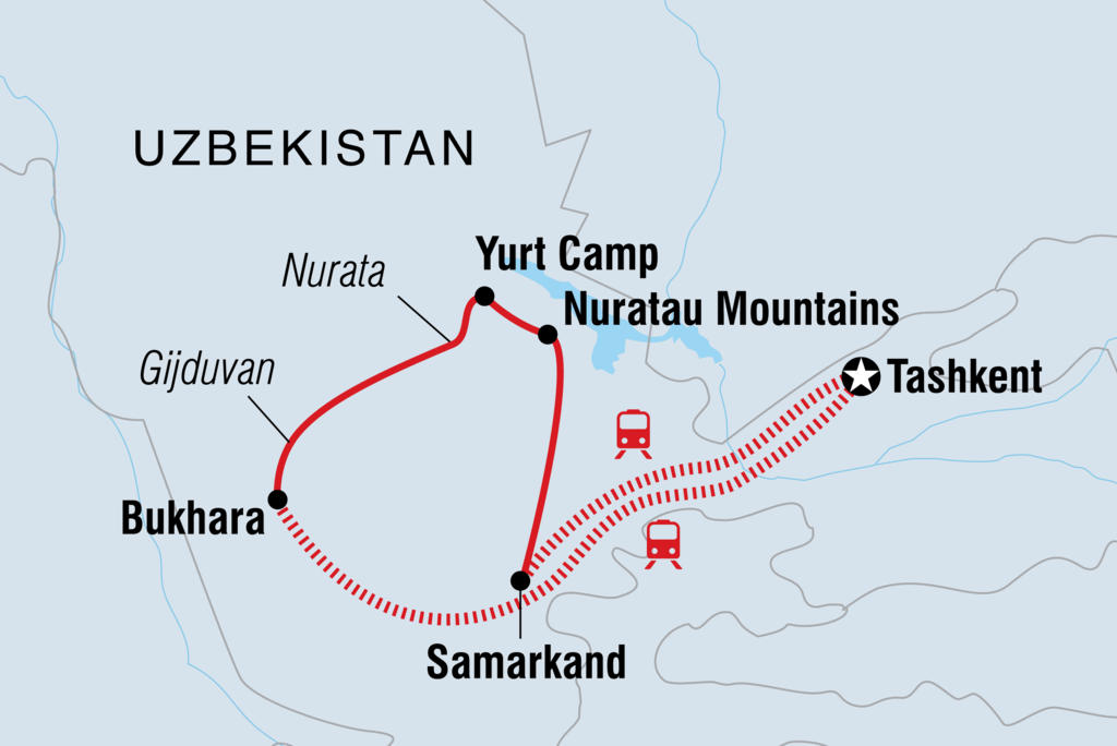 <Willkommen in Taschkent, der Hauptstadt Usbekistans und dem wichtigsten Knotenpunkt Zentralasiens. Dein Abenteuer beginnt mit einem Willkommenstreffen um 18 Uhr, bei dem du deinen Reiseleiter und deine Mitreisenden kennenlernst. Bitte halte Ausschau nach einem Zettel in der Hotellobby oder frage an der Hotelrezeption, wo es stattfinden wird. -